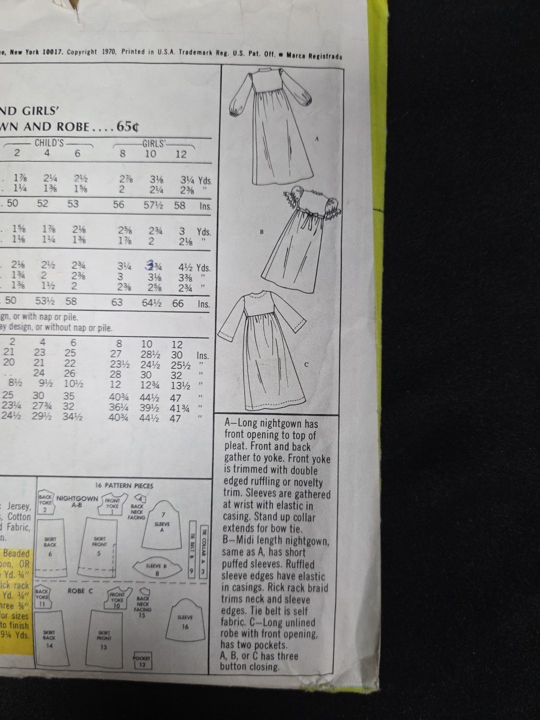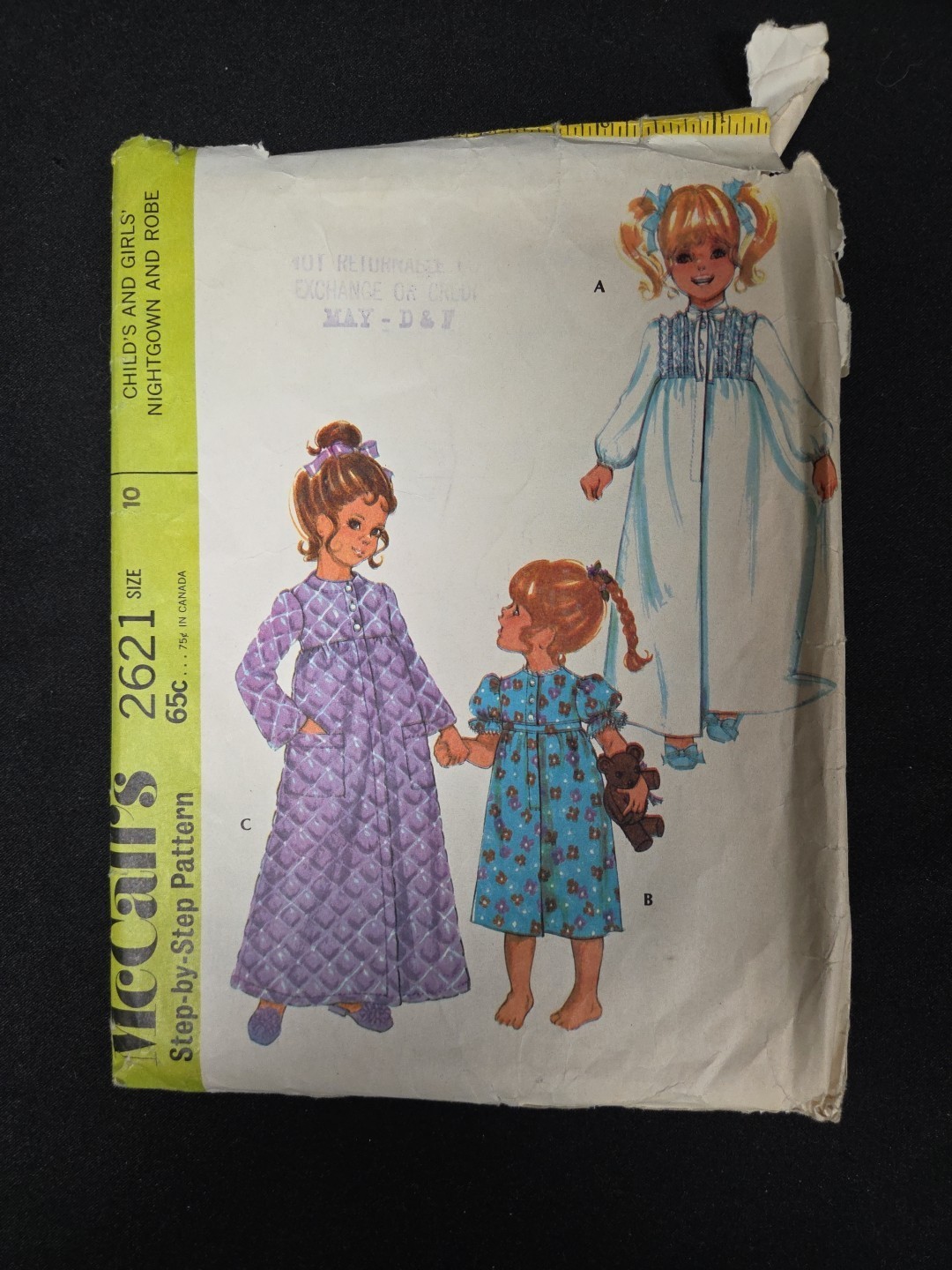 - McCalls Sewing Pattern # 2621 Girls 1970s Bathrobe Nightgowm Size 10 Vintage Cut