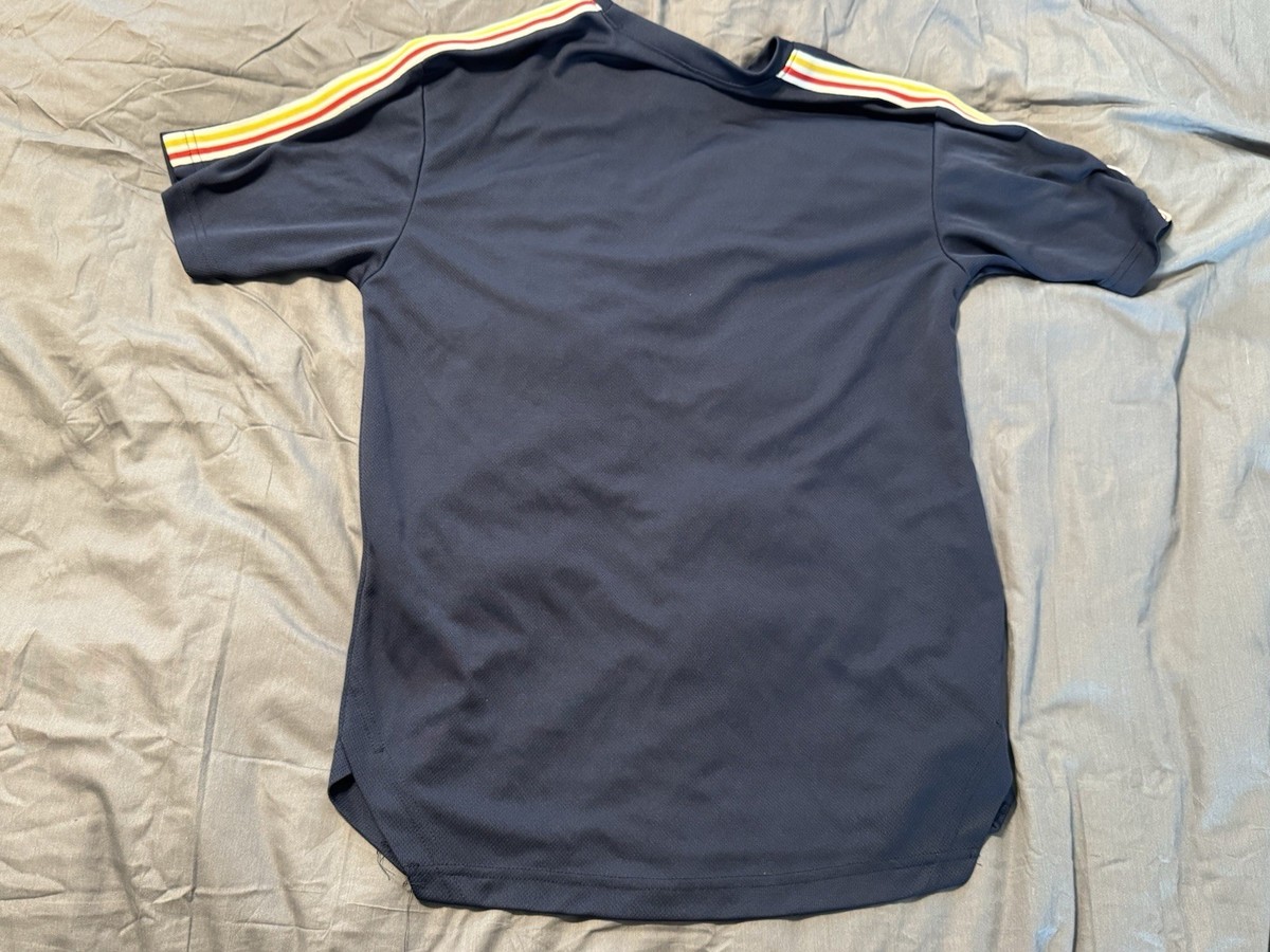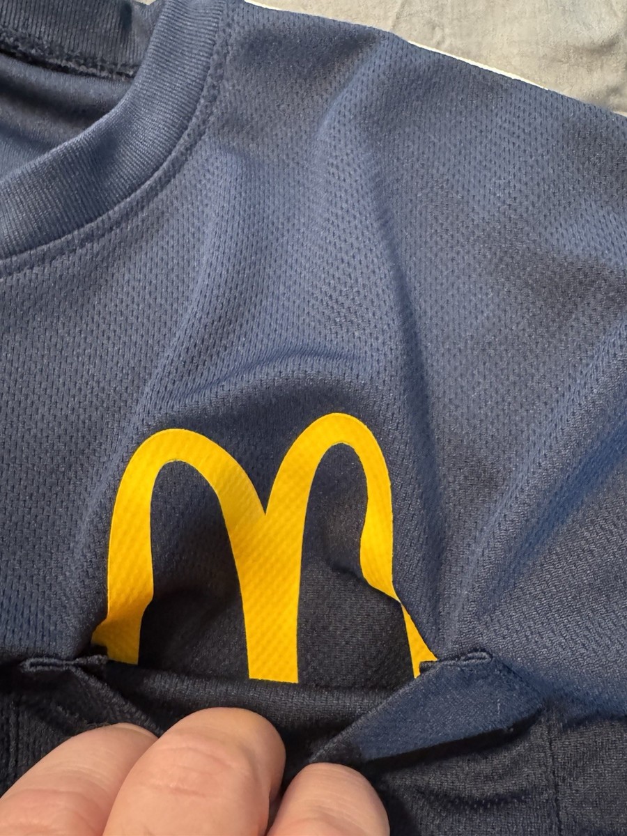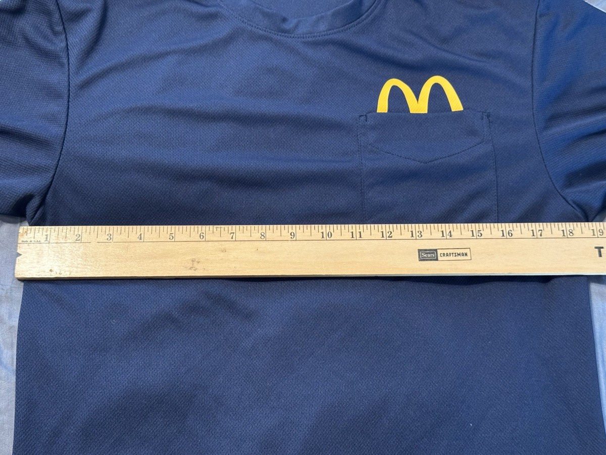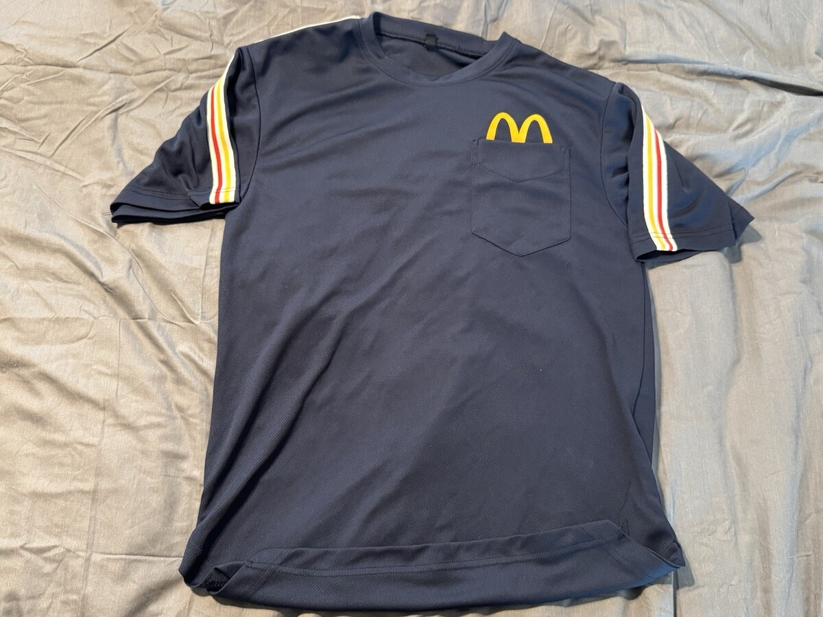 - McDonald’s Uniform Shirt S Navy Crew Tee Pocket Logo Striped Sleeves Polyester