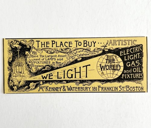 - McKenney & Waterbury Light Fixtures 1894 Advertisement Victorian Boston 5 ADBN1i