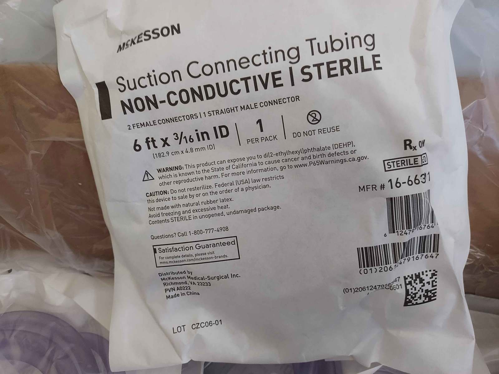 - McKesson 16-66301 connector Female / Male Connector Clear NEW 6 ft x 3/16