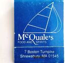 McQuale's Restaurant Vintage Matchbook Shrewsbury Nautical Matches Unstruck E19F