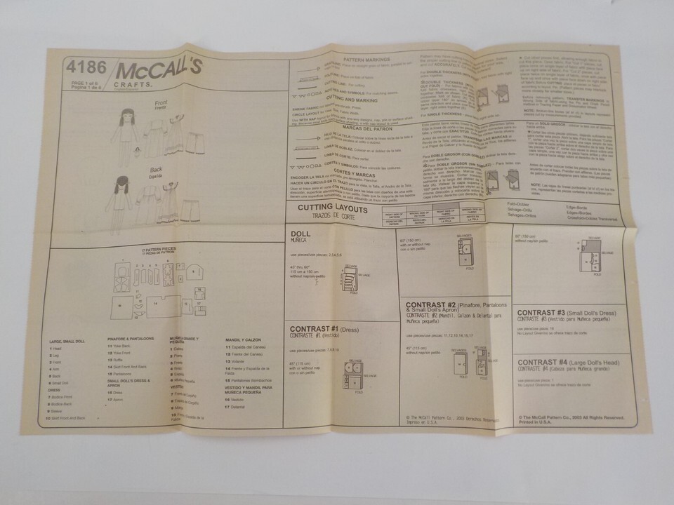 MCCALLS CRAFTS PATTERN #M4186 SOPHIE RAGTIME DOLL CLOTHES AND PLAYMATE DOLL UNCUT 2003