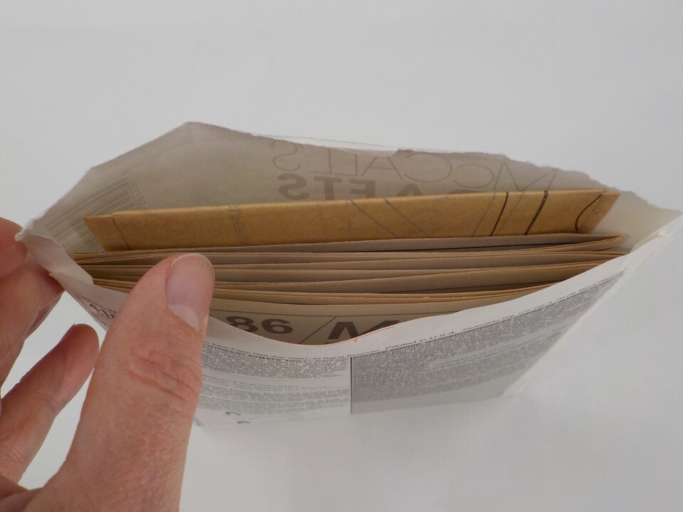 Pattern has never been cut, but the envelope shows wear and tear. Envelope flap has been removed, see picture #2. The directions have yellowed due to age.