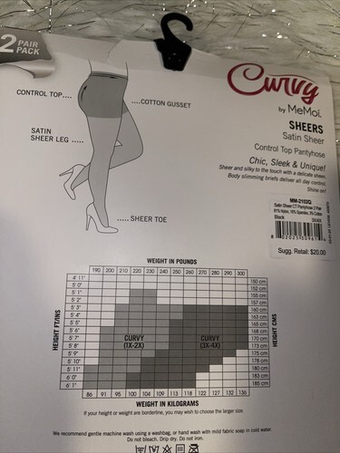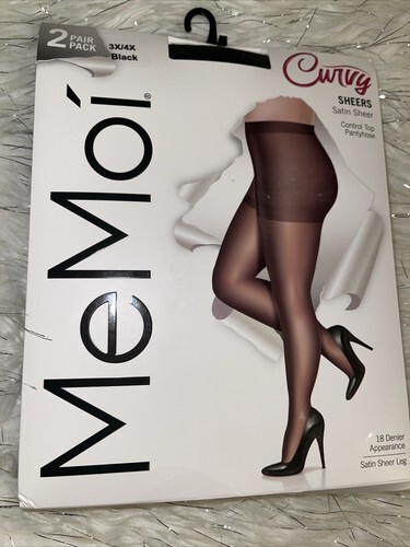 - MeMoi Silky Sheer Curvy Control Top Pantyhose 2 Pair 3X / 4X black