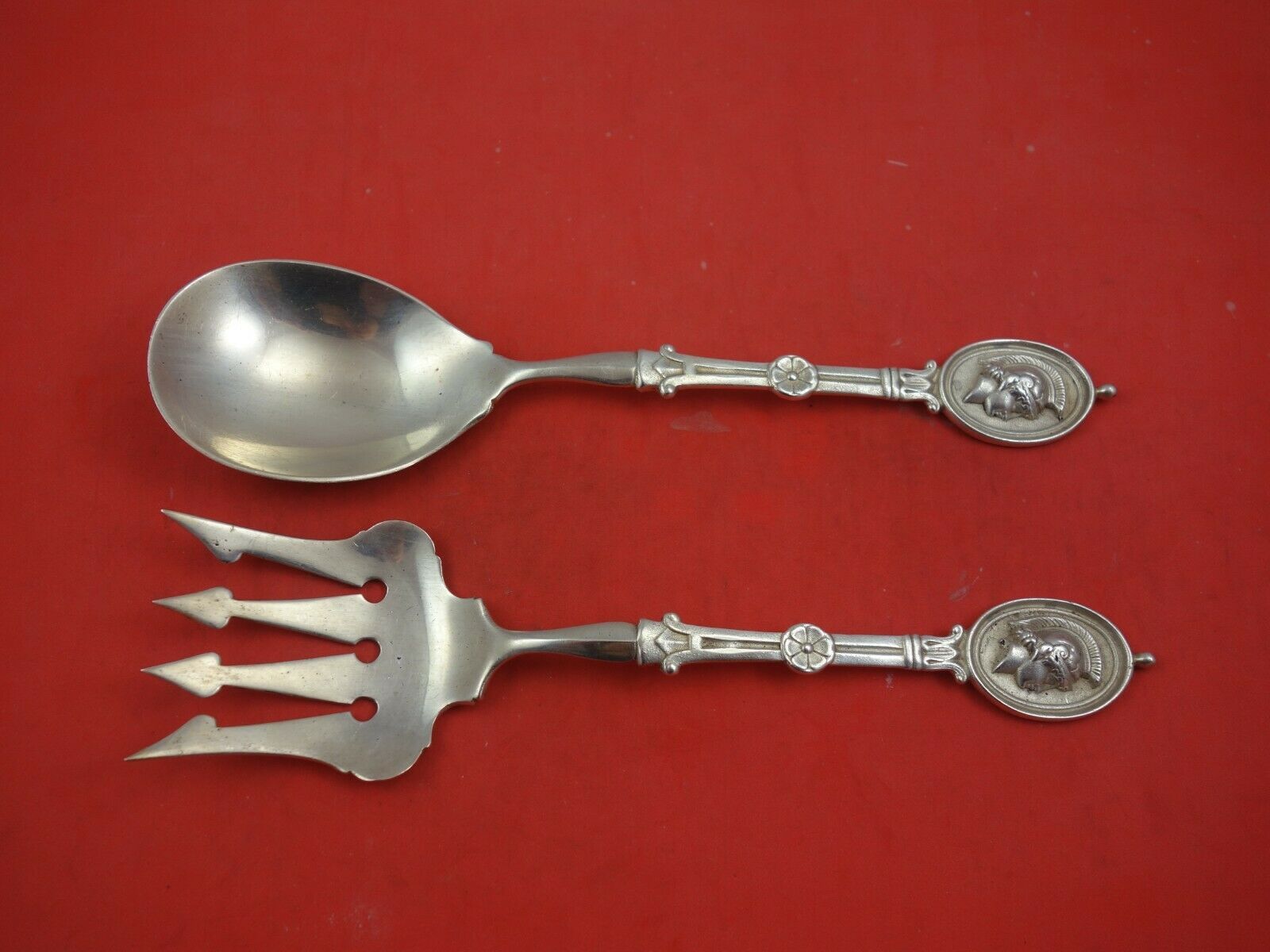 - Medallion by Wendt Sterling Silver Salad Serving Set 2-piece w/ 4-tine Fork 10"