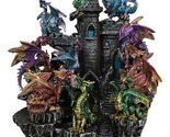 - Medieval Colorful 12 Mini Dragons On Mountain Stonewall Castle Display Stand Set