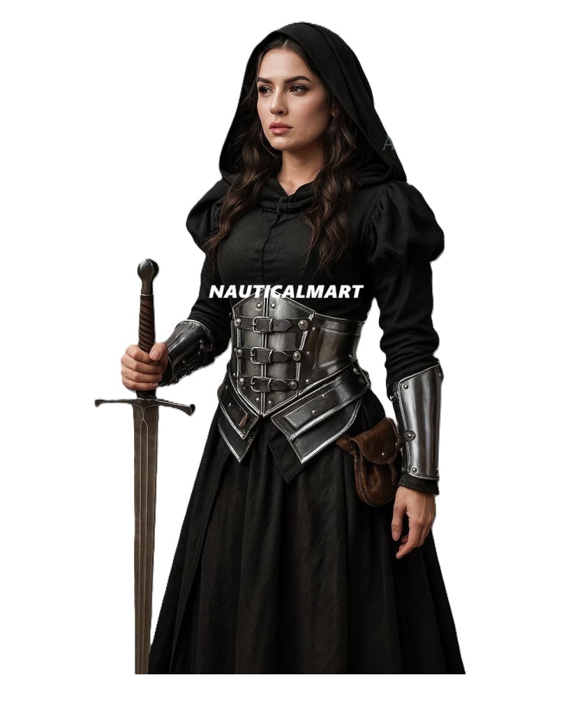 Medieval Corset Armor Set – Brave Lady Bracers | Fantasy Waist Armor, LARP, ,Gift for Women, Girlfriend Gift, Renaissance Costume