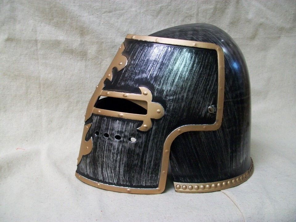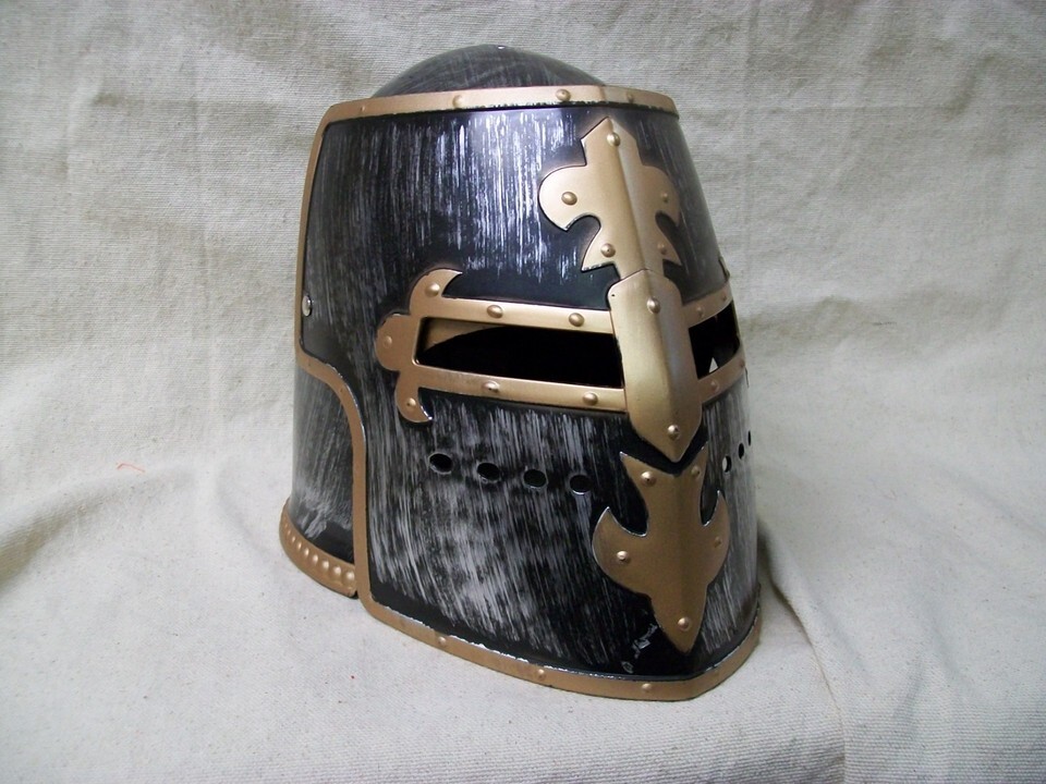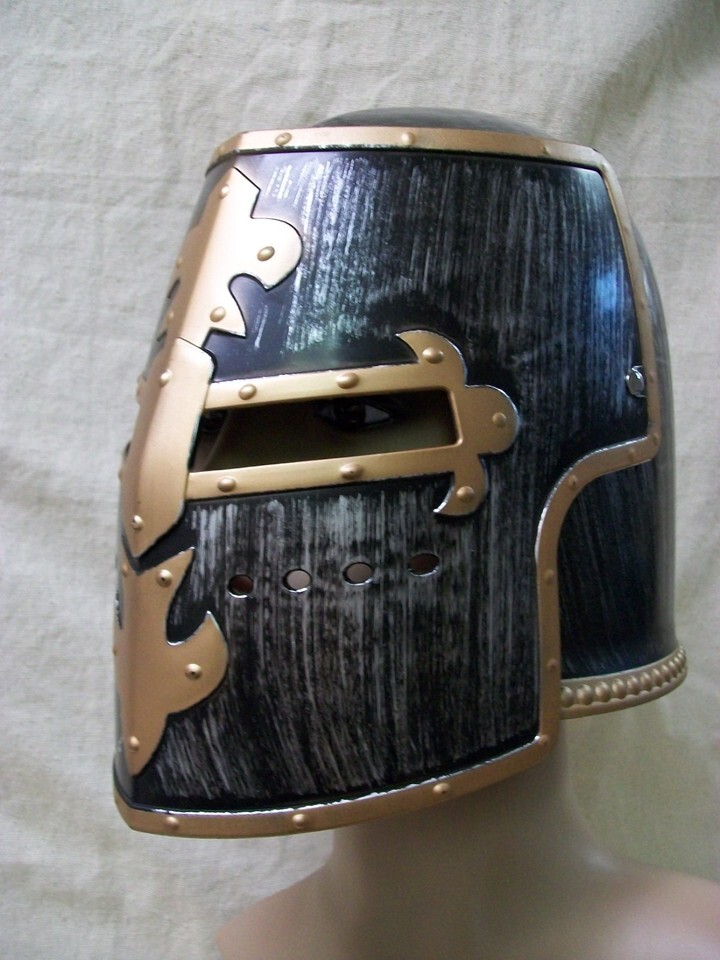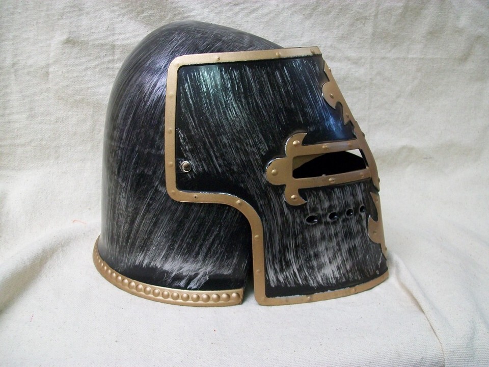 Medieval Crusader Helmet with Brush. movable Front face shield. Visor tilts upward. One Size fits most . Not for ages 12 or under.