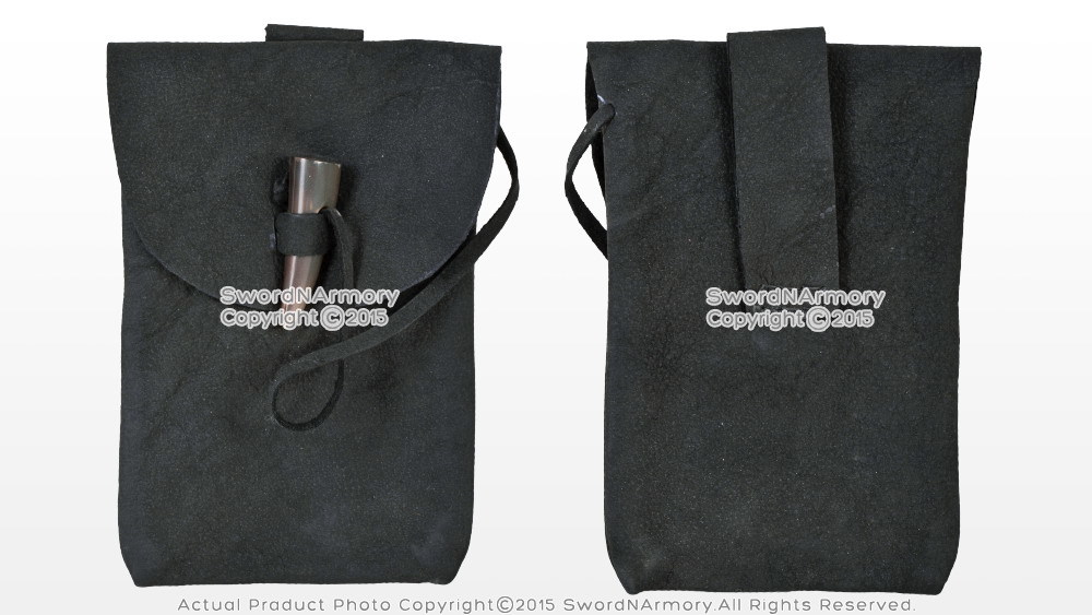 [Description] Our soft and supple medieval black leather pouch bag has a velvet like tanned inner lining making it the ideal place for your cell phone.
