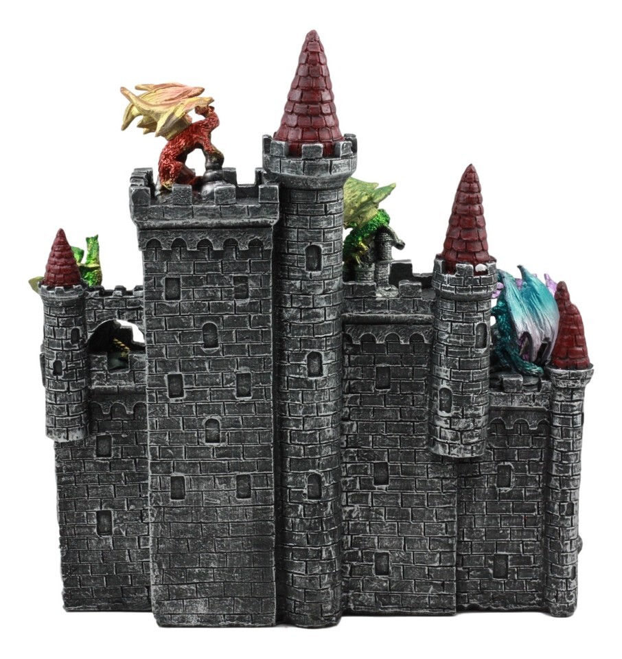 - Medieval Mini Dragons Guarding King's Landing Castle Fortress Display Statue Set