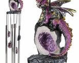 Ebros Medieval Purple Dragon Guarding Topaz Crystal Geode Rock Figurine Wind Chime