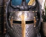 Ebros Medieval Saint George Dragon Guarding Medieval Knight Helmet Pen Holder Statue
