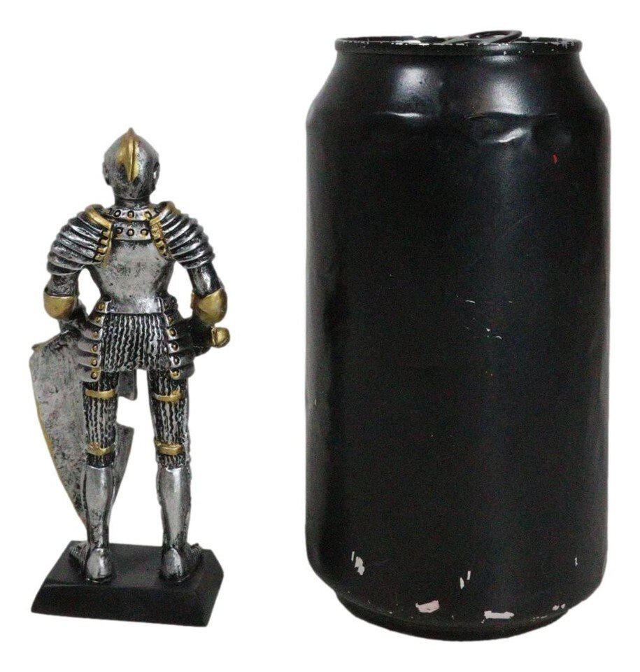 ? This medieval knight miniature figurine is made of high quality polyresin. It is meticulously hand painted and polished. Color tone may vary from pictures.