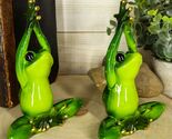 Meditating Twin Yoga Frogs In Lotus Pose Statue Buddha Frogs Pair Set 5.25"Tall