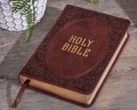 - Medium Brown KJV Holy Bible with Ribbon Marker Faux Leather Red Letter Compact