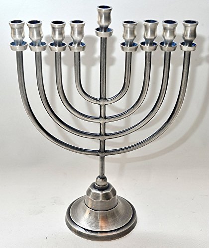 Medium Menorah (Hanukiah) Puter from Holy Land Jerusalem H/27 x W/19 cm