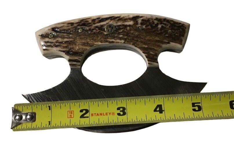 - Medium Stag Handle Wood Handle Ulu Knife 5" Damascus Blade Bowl Leather Sheath
