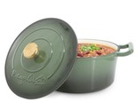 - MegaChef 5.3 Quarts Round Enameled Cast Iron Casserole w Lid in Thyme Green