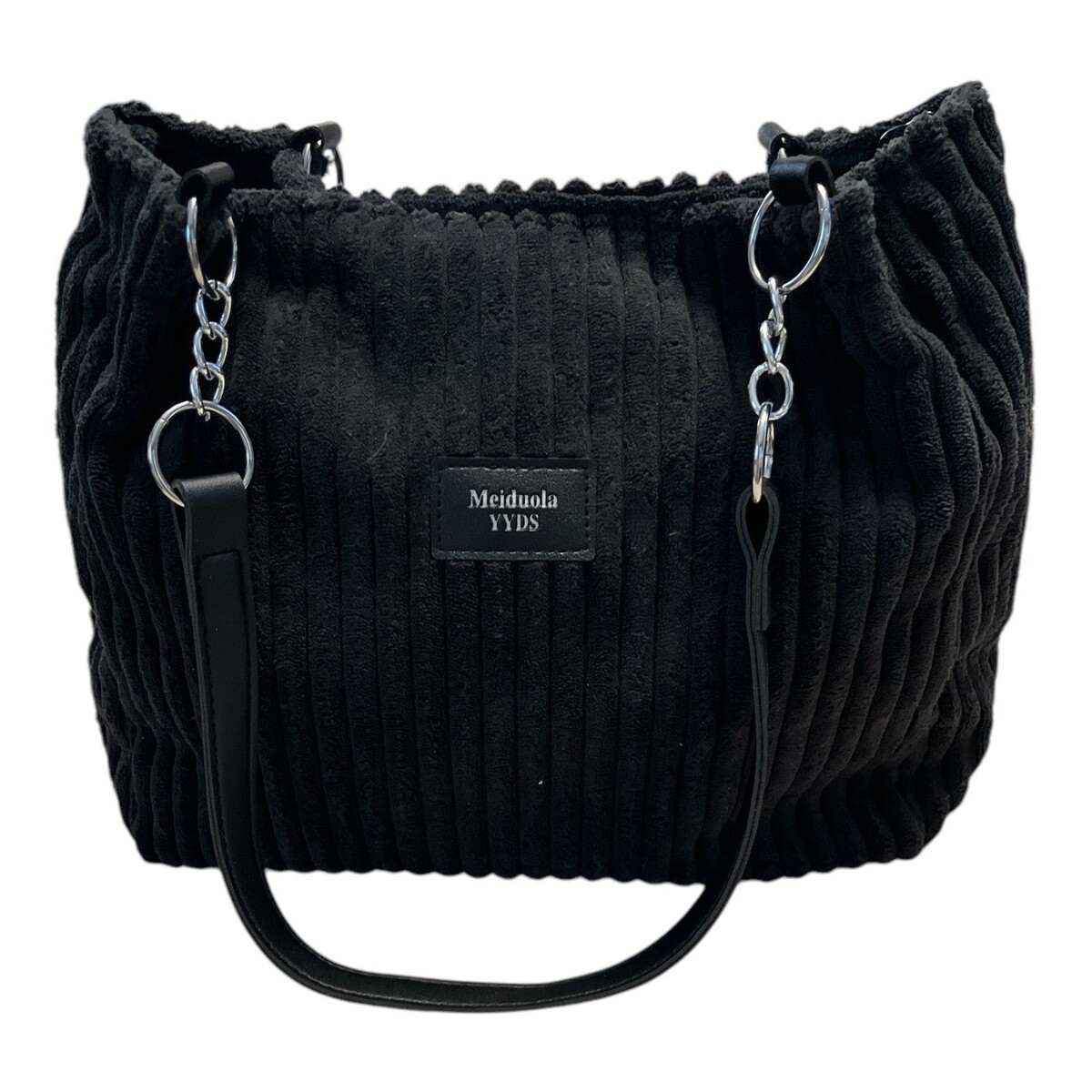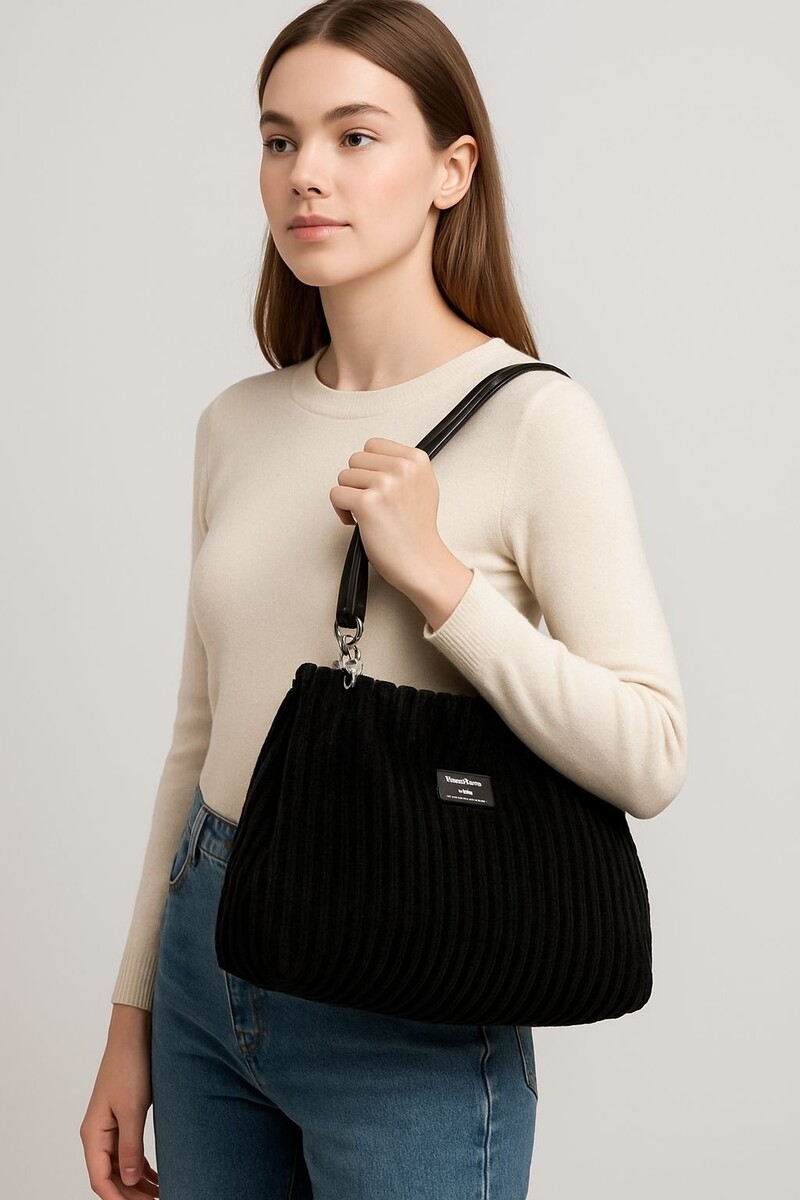 Meiduola YYDS Black Corduroy Shoulder Bag Tote Purse Soft Textured Fabric New