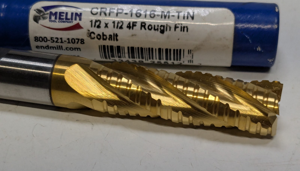 - MELIN TOOL CO CRFP-1616-M-TiN Cobalt Rough Finishing End Mill 1/2" Dia & Shank