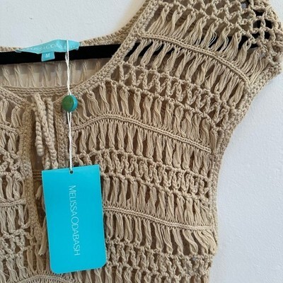 - Melissa Odabash Barrie Crochet Cotton Cover Up Beige Fringe Hemline M