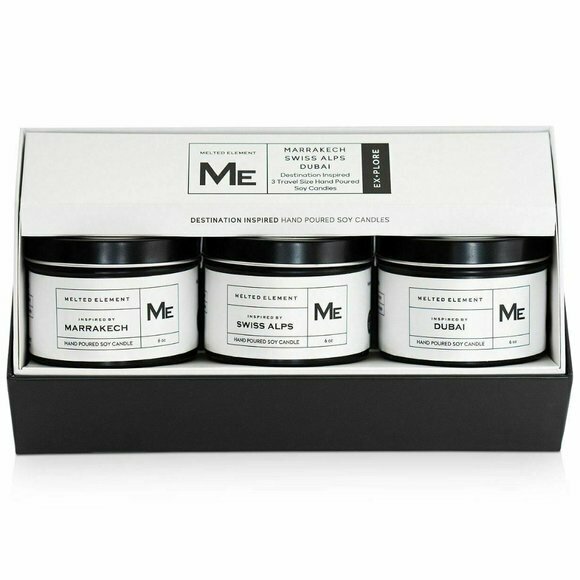 - Melted Element M3 Hand Pour Soy Candle Travel Set EXPLORE Alps Marrakech Dubai