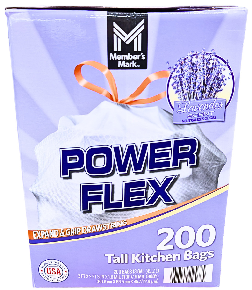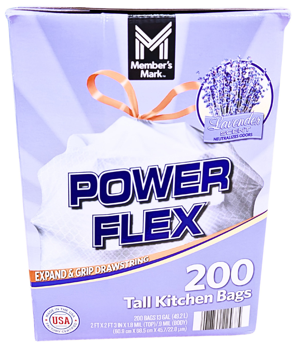 - Member's Mark Power Flex 13-Gallon Tall Kitchen Trash Bags Lavender 200 Count