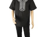 - Men 2pc Stacy Adams leisure suit Linen Cotton With Embroidery 3668 Black White