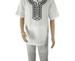 - Men 2pc Stacy Adams leisure suit Linen Cotton With Embroidery 3668 white black
