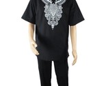Men 2pc Stacy Adams leisure suit Linen Cotton With Embroidery 3670 Black white