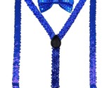 - Men AB Elastic Band Blue Sequin Suspender With Maching Polyester Bowtie