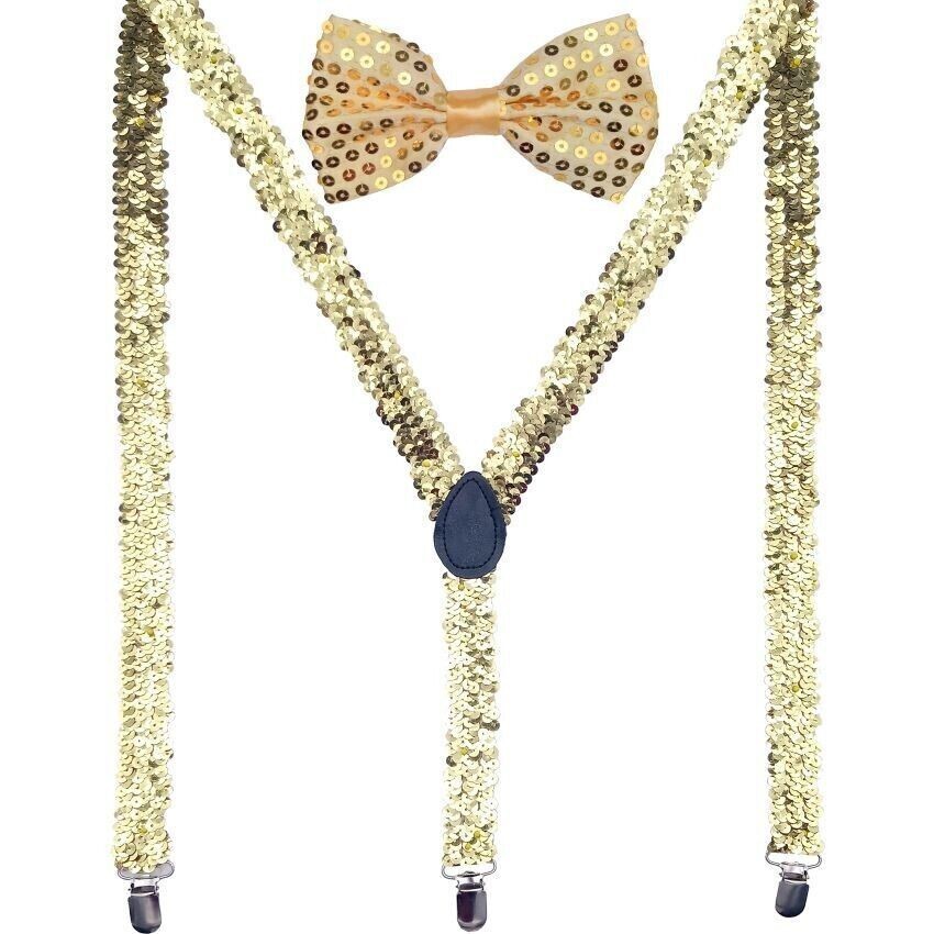 - Men AB Elastic Band Gold Sequin Suspender With Maching Polyester Bowtie