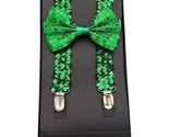 - Men AB Elastic Band Green Sequin Suspender With Maching Polyester Bowtie