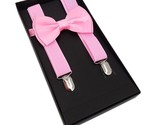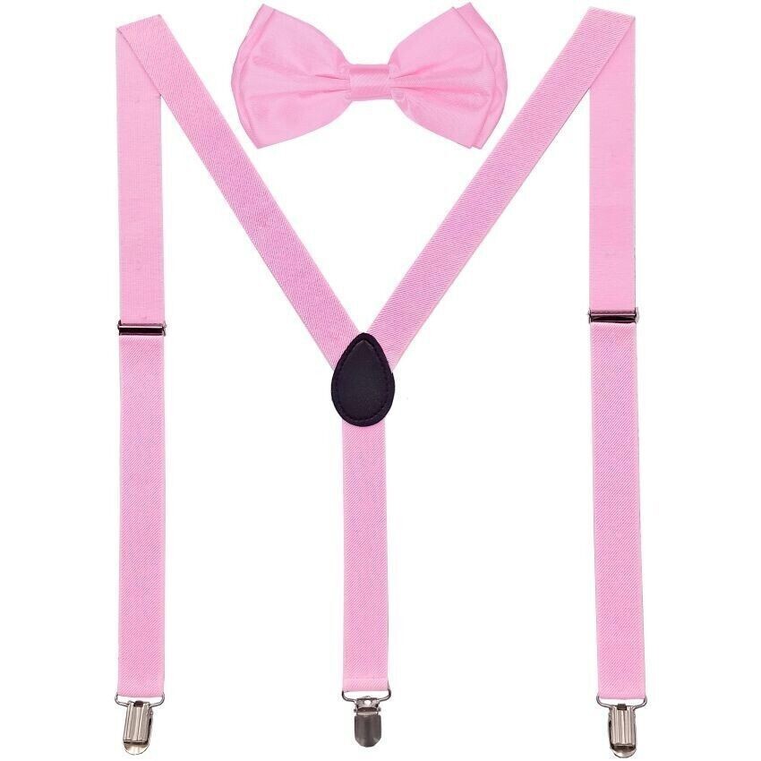 - Men AB Elastic Band Light Pink Suspender With Maching Polyester Bowtie