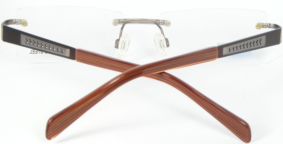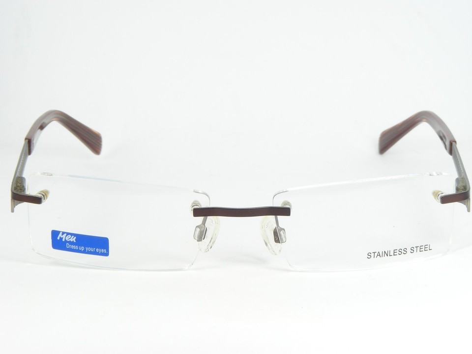 - MEN BI7663 12 WALNUT BROWN EYEGLASSES GLASSES METAL RIMLESS 7663 54-18-140mm