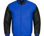 - Men Blue Varsity Leather Jackets With Black Sleeves