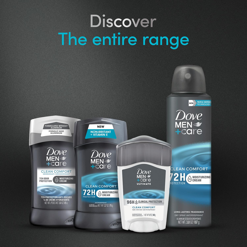 - Men+Care Deodorant, 96H Clinical Protection Antiperspirant, Clean Comfort 3-Pack