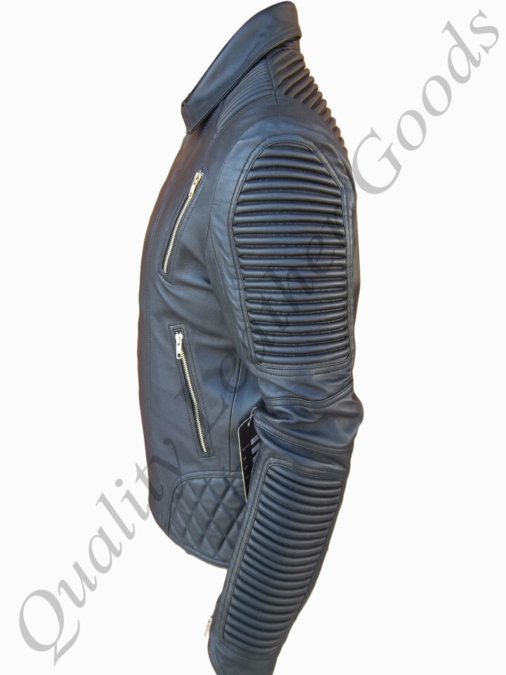 - MEN ELITE 80'S VINTAGE LEATHER JACKET BIKER QUILTED ROCK PUNK LARGE