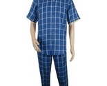 - Men INSERCH premium Soft Cool Linen 2pc Walking Leisure suit 7098 Blue Plaid