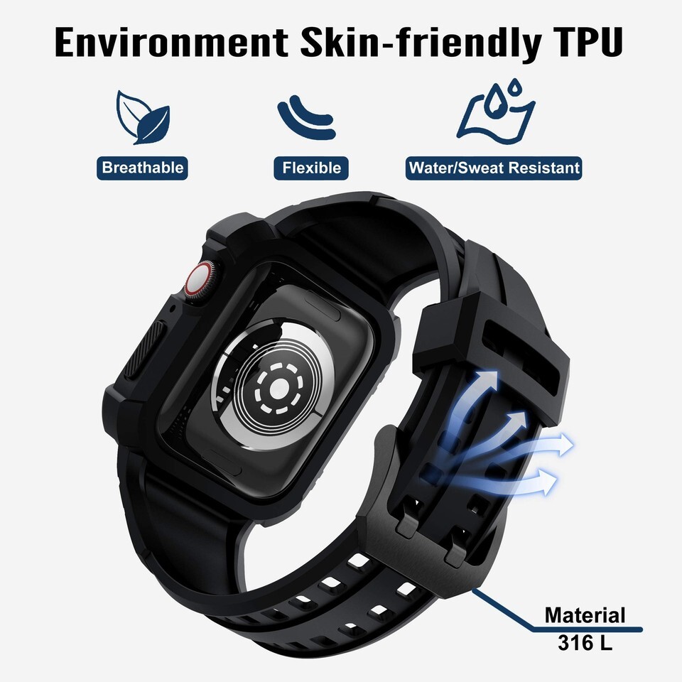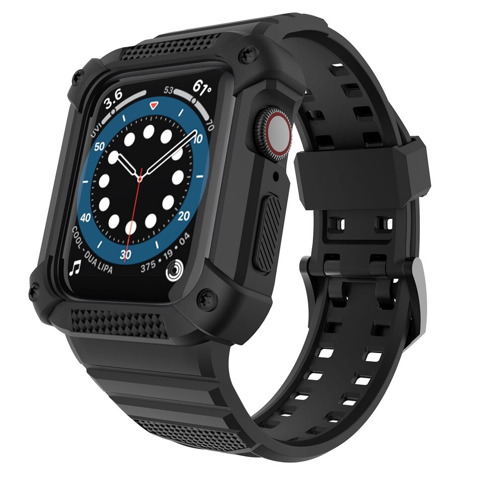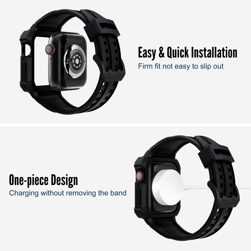 RUGGED WATCH PROTECTOR BAND - One-piece rugged watch band with protective case which is compatible with Apple Watch 45mm Series 8 7 / 44mm Series 6 SE 5 4 / 42mm Series 3 2 1.Personalize your watch with a sporty and solid look.