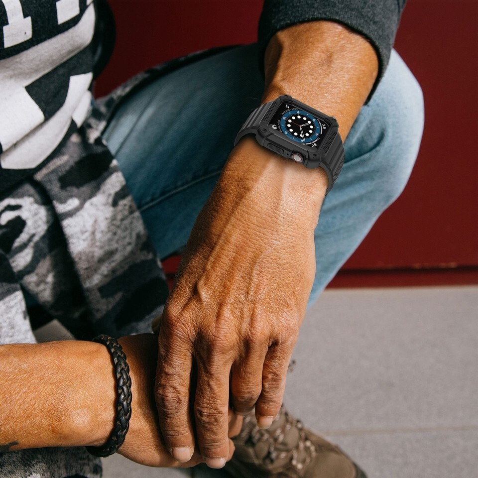 - Men Rugged Apple Watch Case Bumper Band Strap Cover For iWatch SE 8 7 6 5 4 3 2