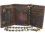 - Men'S RFID Blocking Trifold Vintage Leather Biker Chain Wallet with Snap Closure