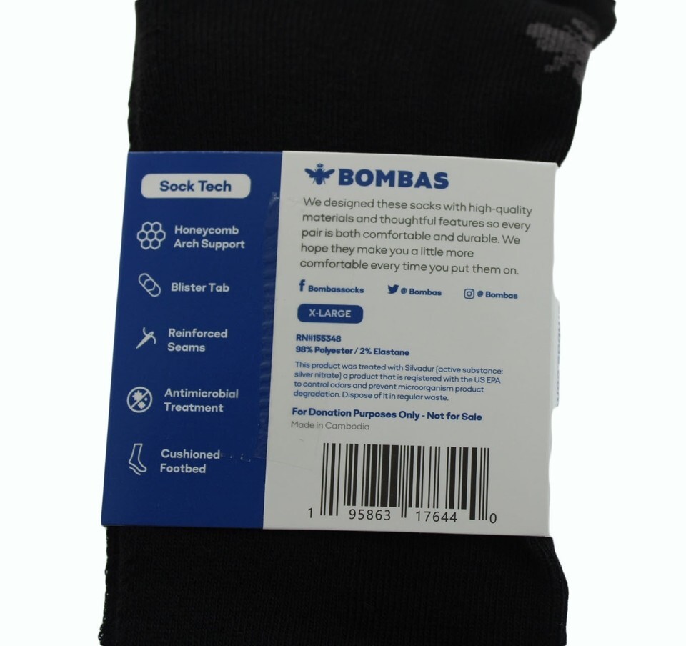 Men Socks Bombas 2 Pack Lightweight Ankle Socks Size XL Shoes Size 9-13 Black