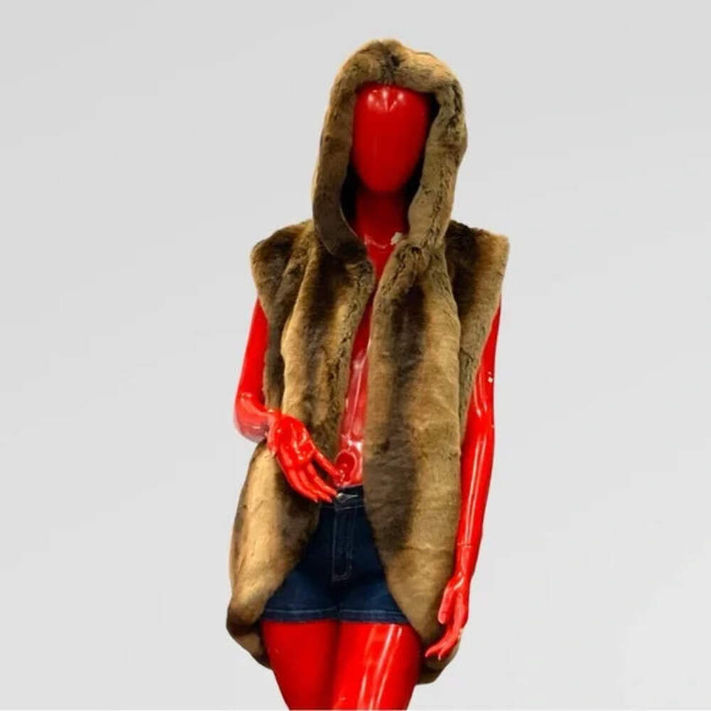 - Men | Women Luxury Brown Faux Fur Hooded Vest NWT