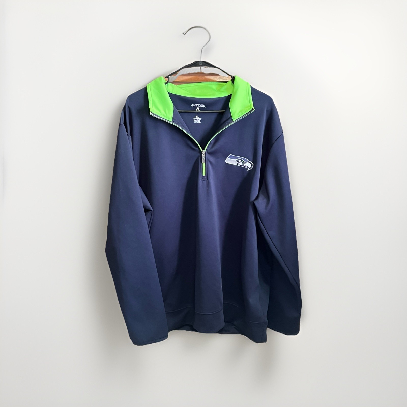 - Men's Antigua NFL Seattle Seahawks Navy Blue 1/3 Zip Pullover Shirt xl