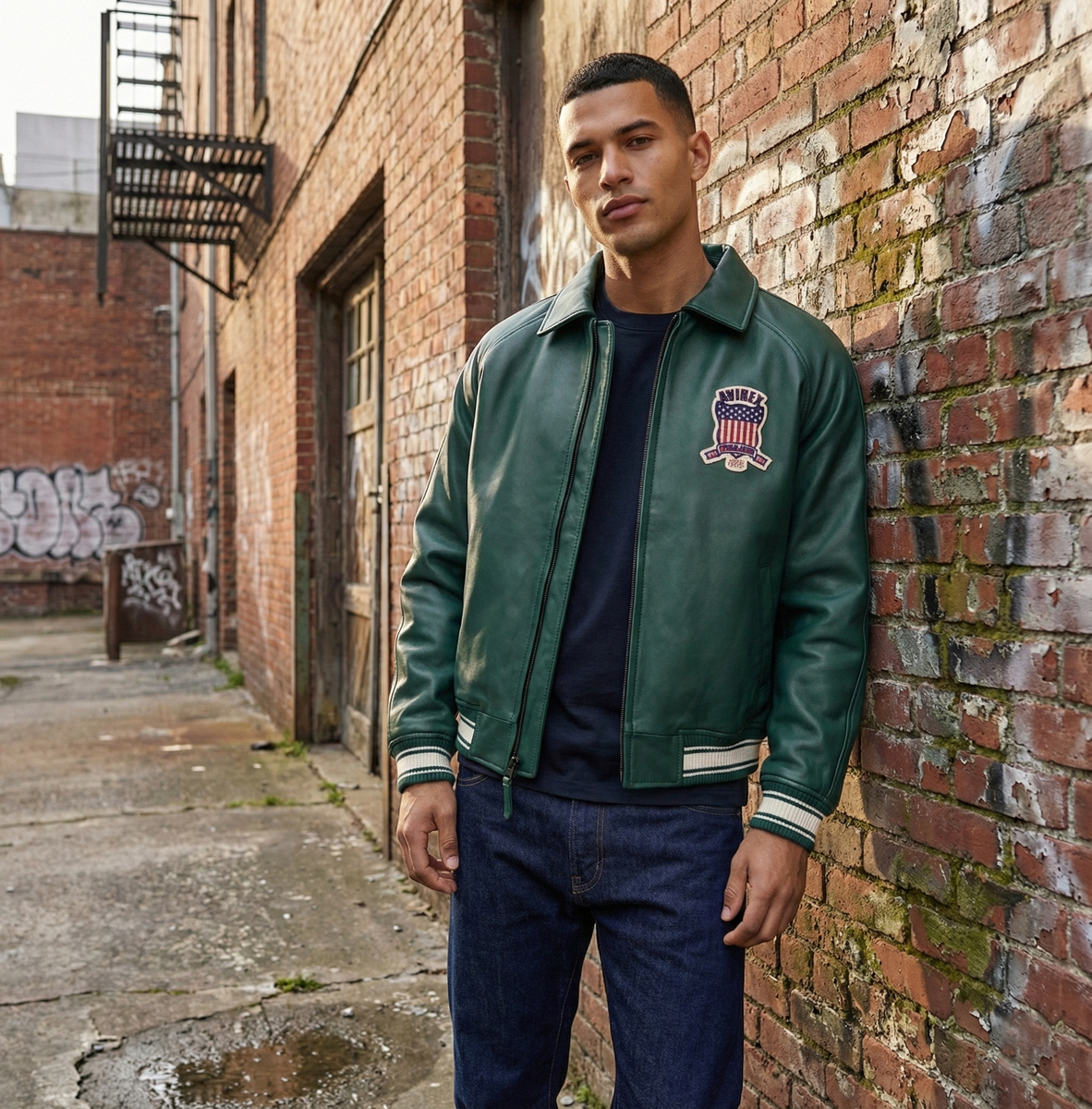 - Men's Avirex Real Lamb Bomber American Flight Jacket Leather Icon Jacket Unisex