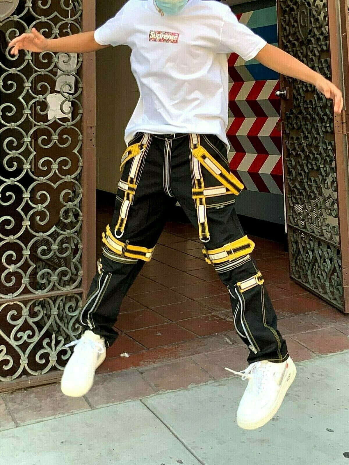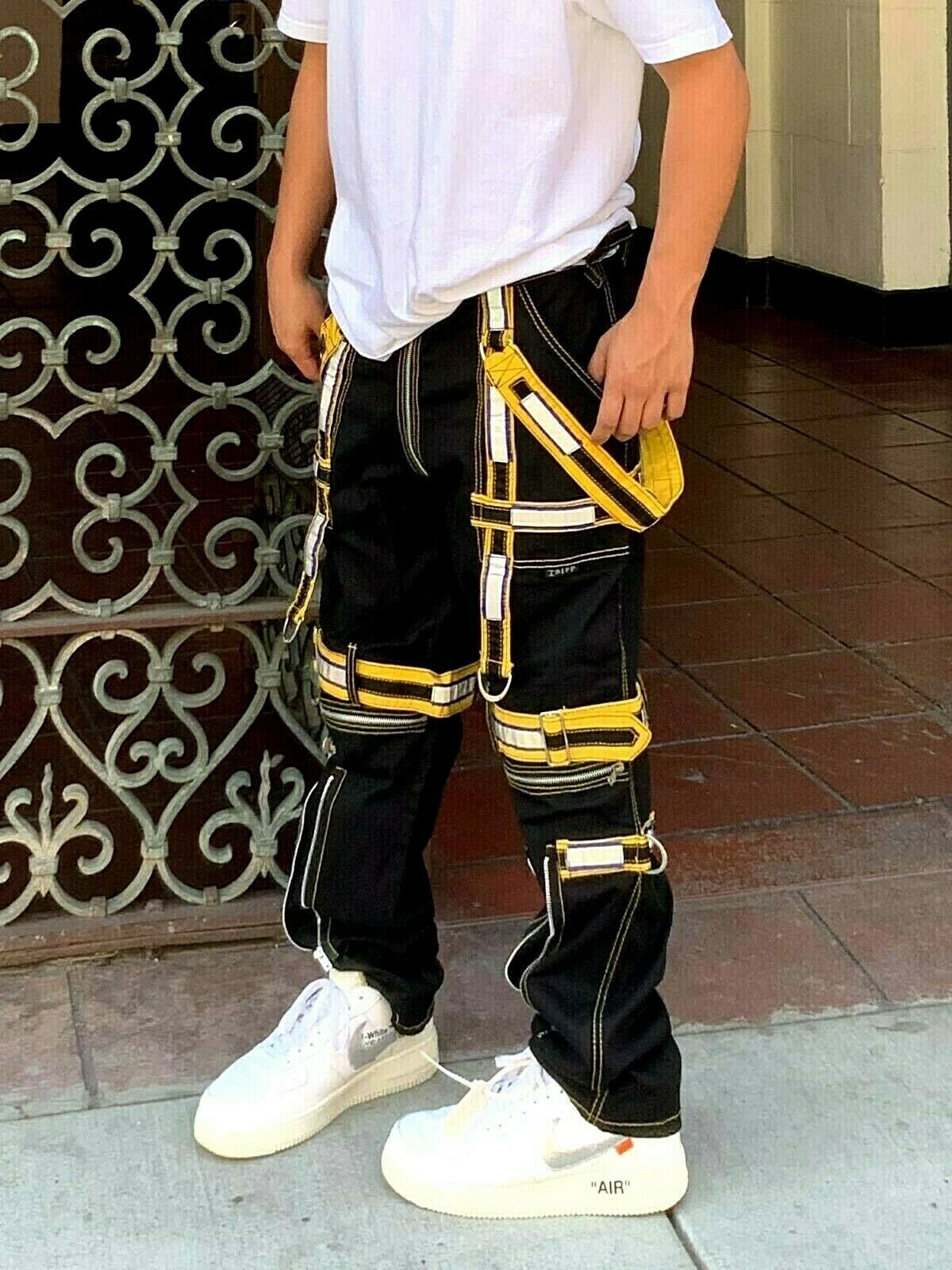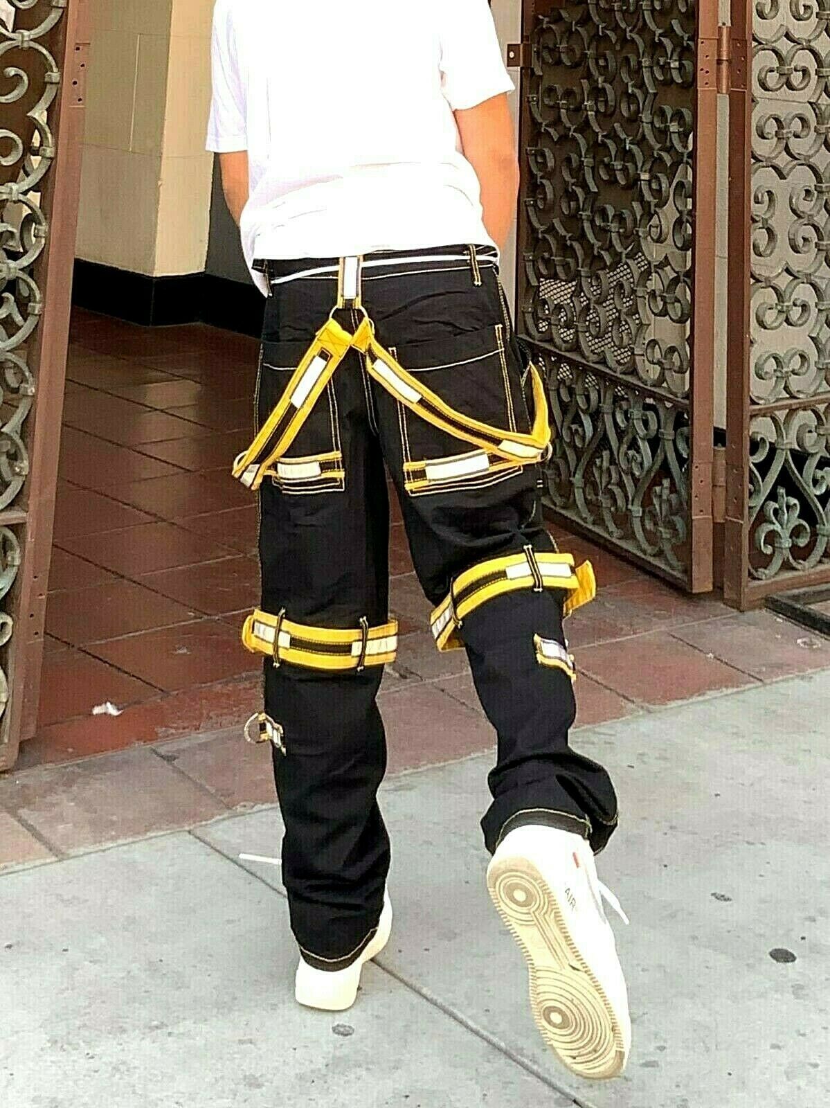 - Men's Black | Yellow Straps Fashion Pants