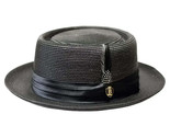 - Men's Bruno Capelo RAFAELE Braid Straw Pork Pie Hat Telescope Crown RF-400 Black