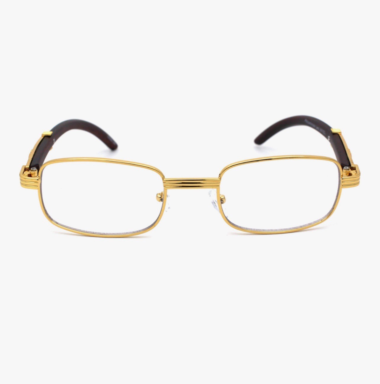 - Men's CONTEMPORARY Clear Lens EYE GLASSES Small Gold & Wood Wooden Effect Frame