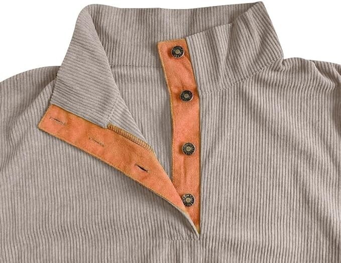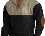 - Men's Corduroy Mock Neck Button Pullover Sweater-shirt Apricot-black, size L